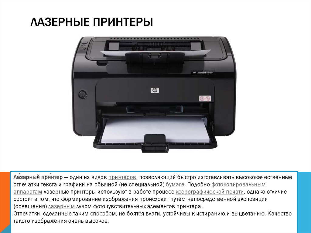 ЛАЗЕРНЫЕ ПРИНТЕРЫЛа́зерный при́нтер — один из видов принтеров, позволяющий быстро изготавливать высококачественные