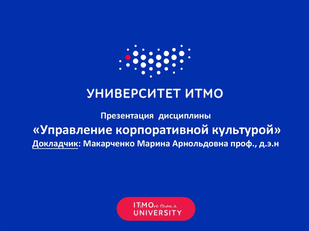 Презентация дисциплины«Управление корпоративной культурой»