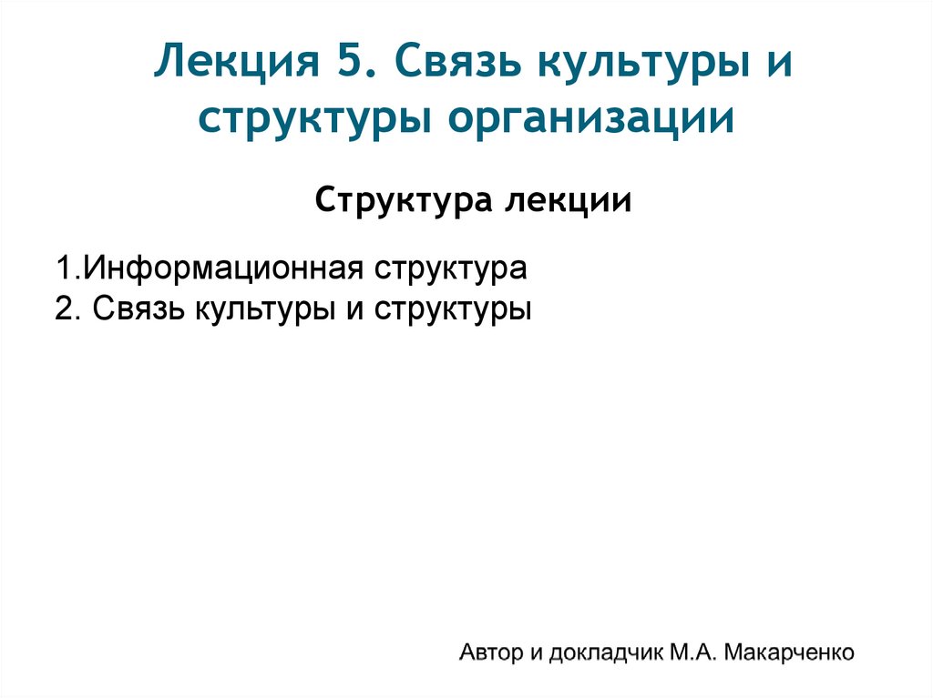 Лекция 5. Связь культуры иструктуры организации