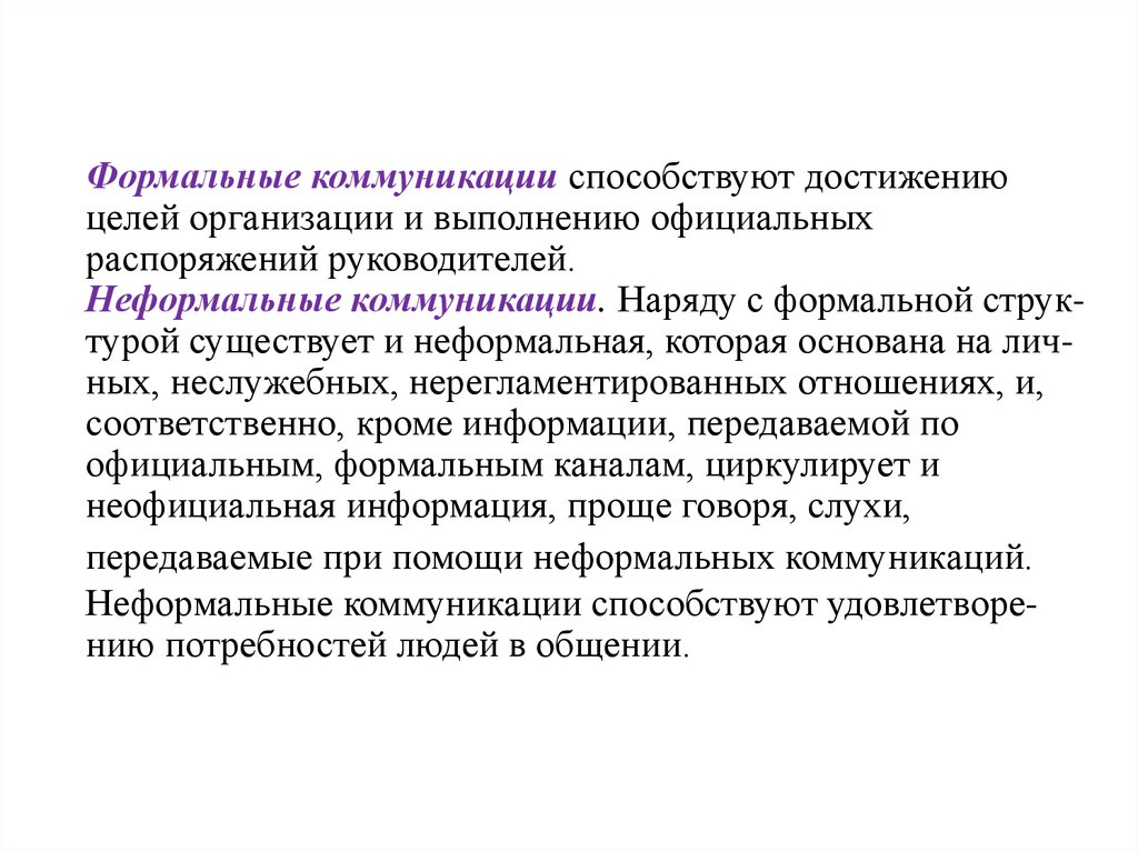 Формальные коммуникации способствуют достижениюцелей организации и выполнению официальных