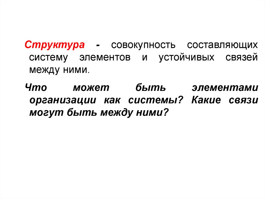 Структура - совокупность составляющихсистему элементов и устойчивых связей