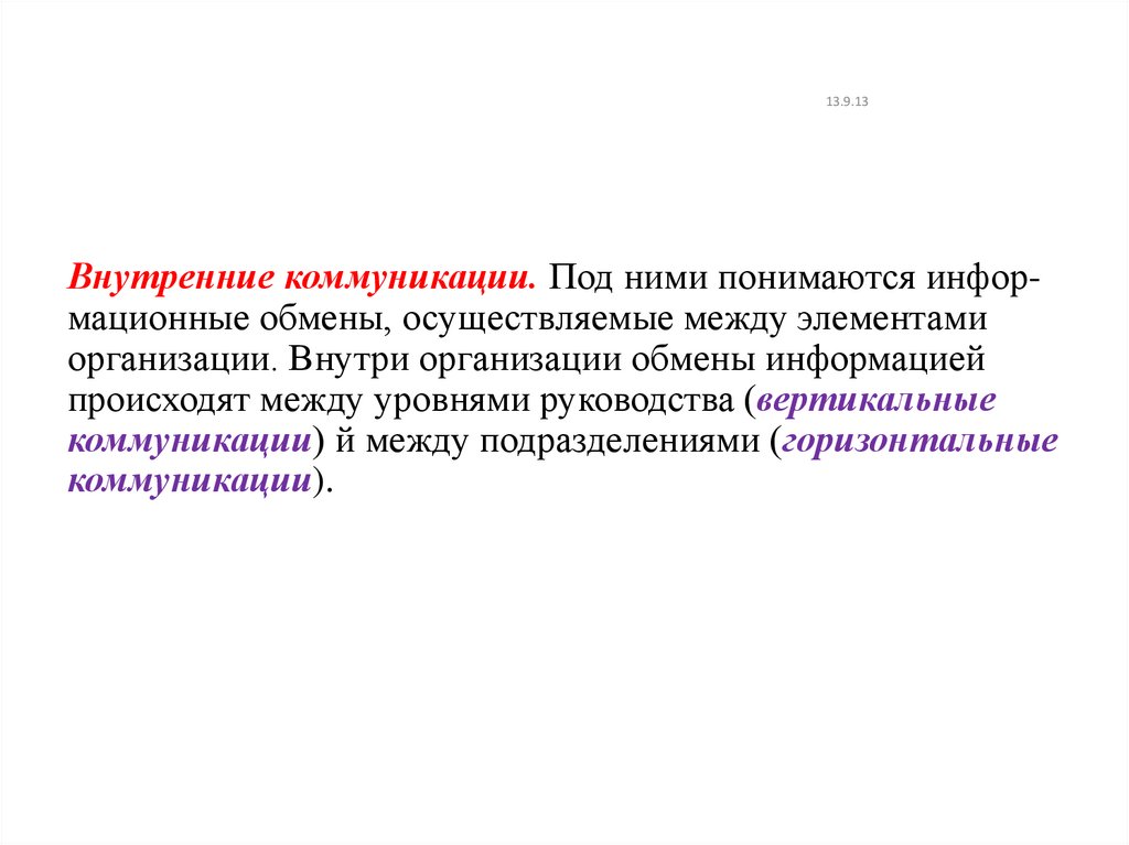 коммуникации) й между подразделениями (горизонтальные
