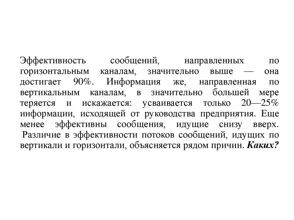 менее эффективны сообщения, идущие снизу вверх.