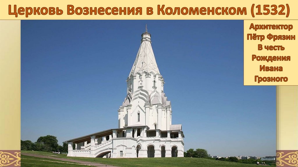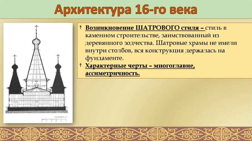 † Возникновение ШАТРОВОГО стиля – стиль вкаменном строительстве, заимствованный из