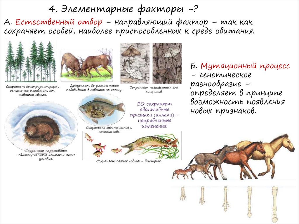 4. Элементарные факторы -?А. Естественный отбор – направляющий фактор – так как