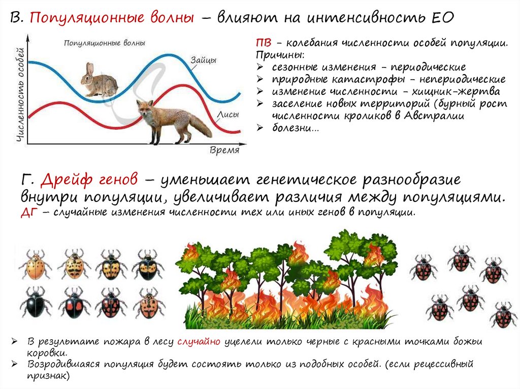 В. Популяционные волны – влияют на интенсивность ЕОПВ - колебания численности особей популяции.