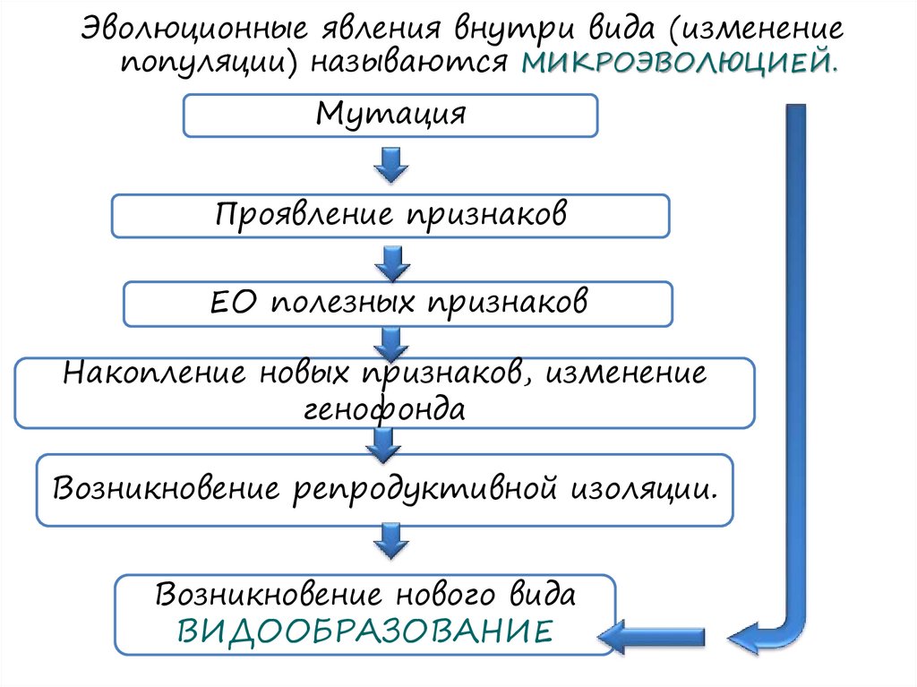 Эволюционные явления внутри вида (изменениепопуляции) называются МИКРОЭВОЛЮЦИЕЙ.