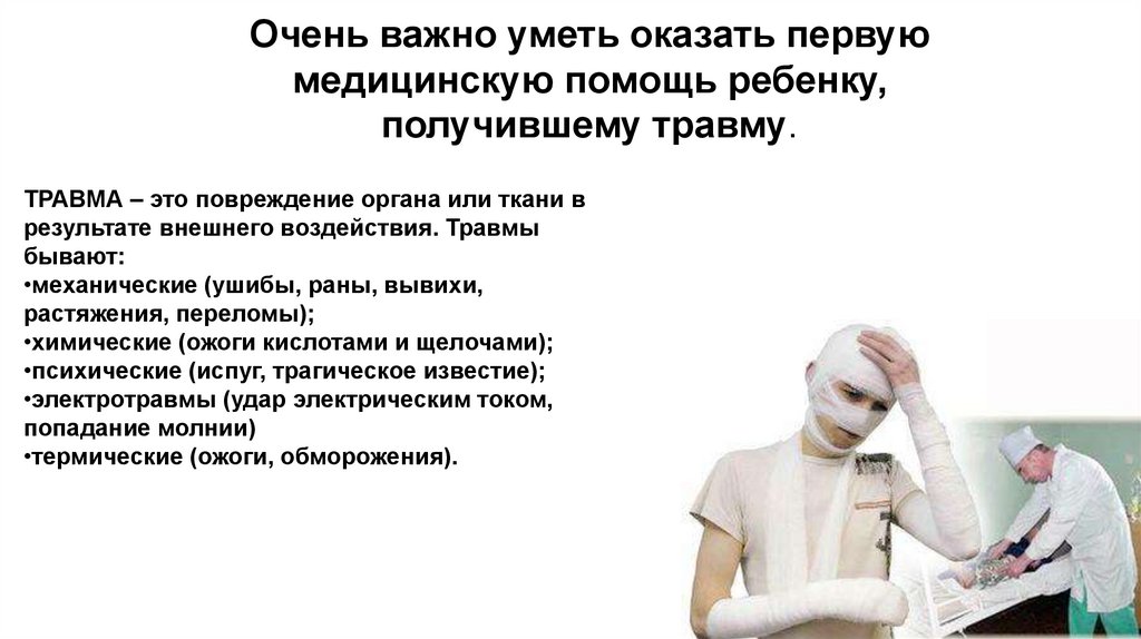 Очень важно уметь оказать первуюмедицинскую помощь ребенку,