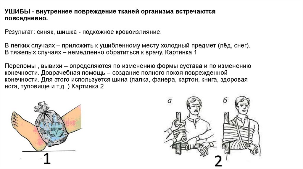 УШИБЫ - внутреннее повреждение тканей организма встречаютсяповседневно.