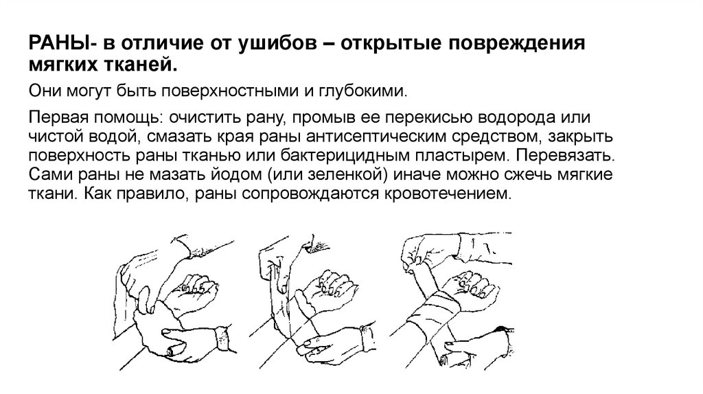 РАНЫ- в отличие от ушибов – открытые повреждениямягких тканей.