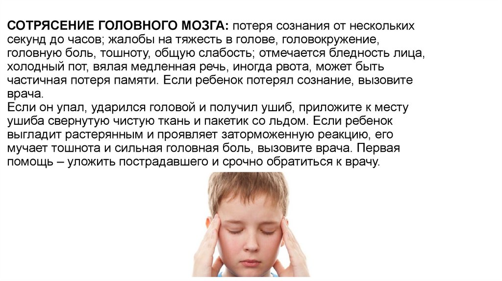 частичная потеря памяти. Если ребенок потерял сознание, вызовите