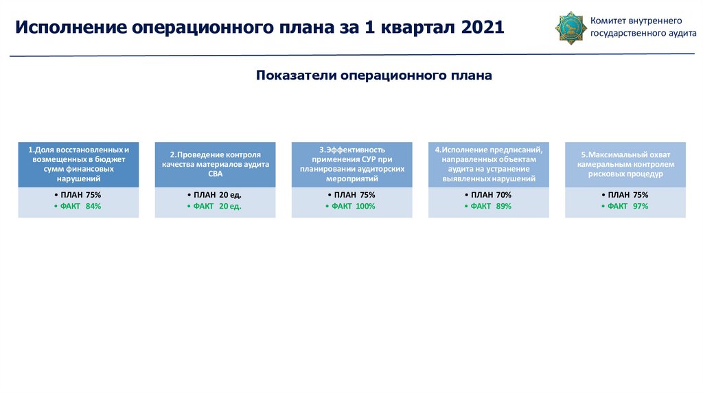 Исполнение операционного плана за 1 квартал 2021Комитет внутреннего