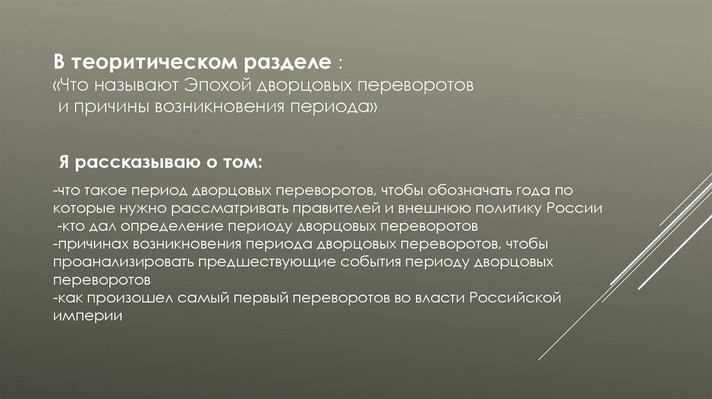 В теоритическом разделе :«Что называют Эпохой дворцовых переворотов