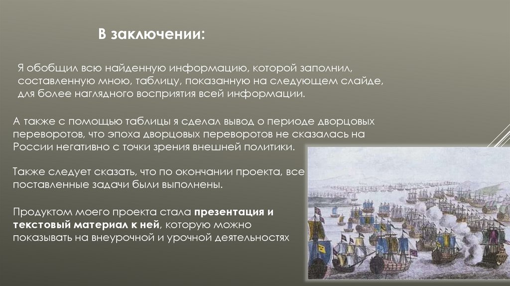 Также следует отметить, что период дворцовых переворотов можно