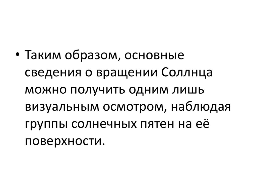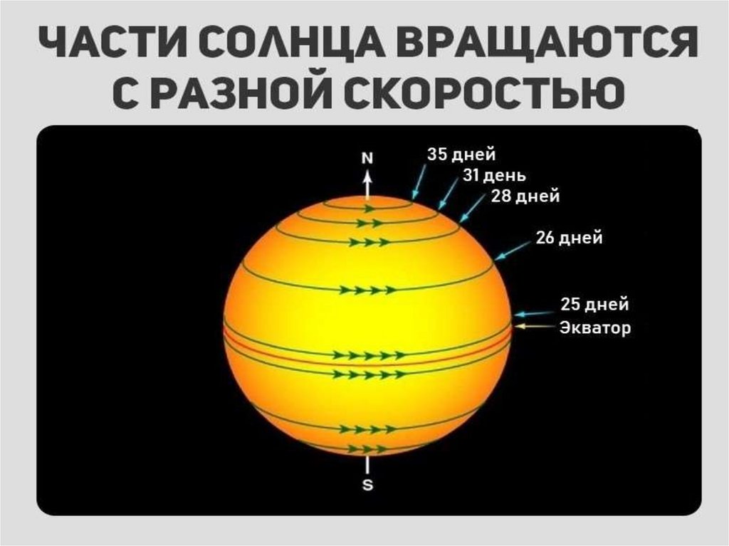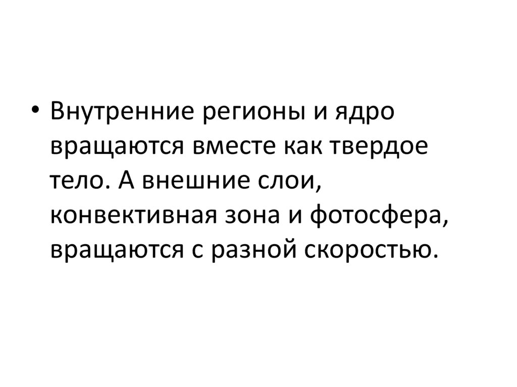 • Солнце вращается вокруг своей оси, но некак твердое тело: чем дальше от экватора,