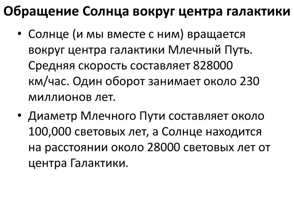Обращение Солнца вокруг центра галактики• Солнце (и мы вместе с ним) вращается
