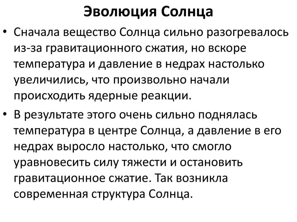 Эволюция Солнца• Сначала вещество Солнца сильно разогревалось