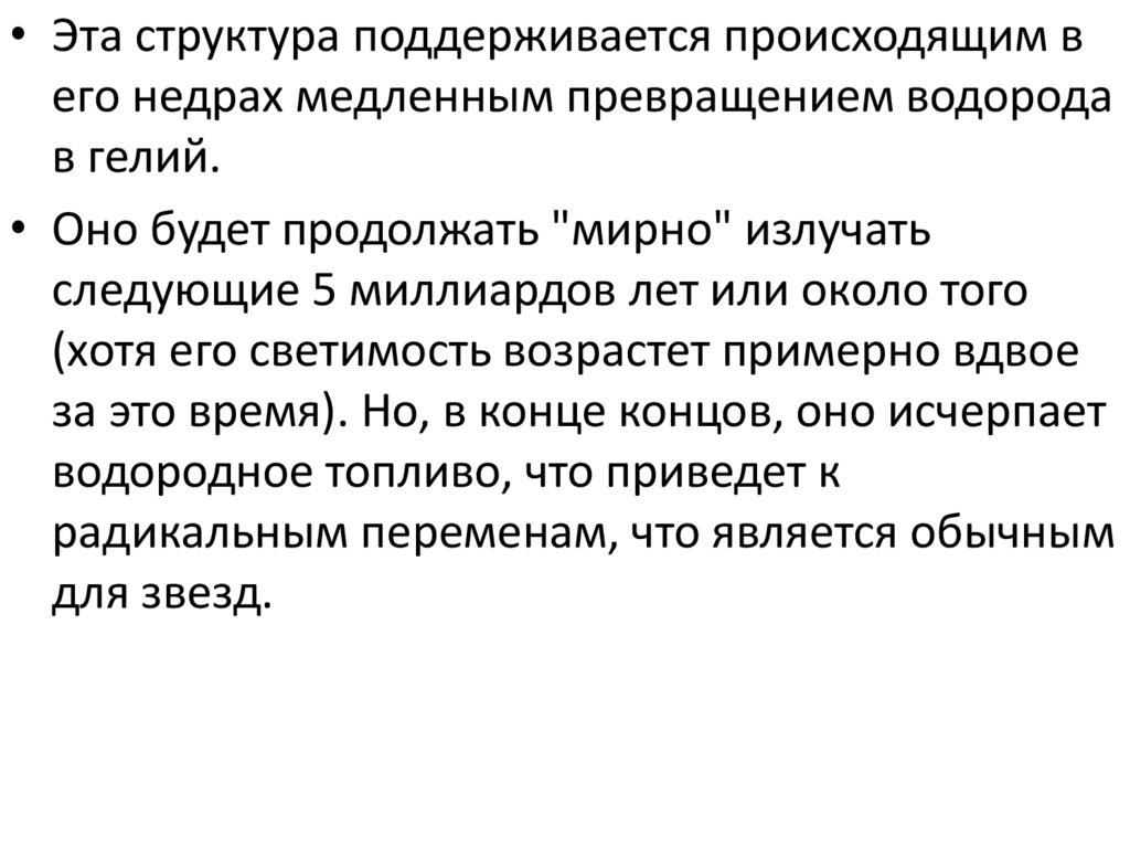 • Эта структура поддерживается происходящим вего недрах медленным превращением водорода