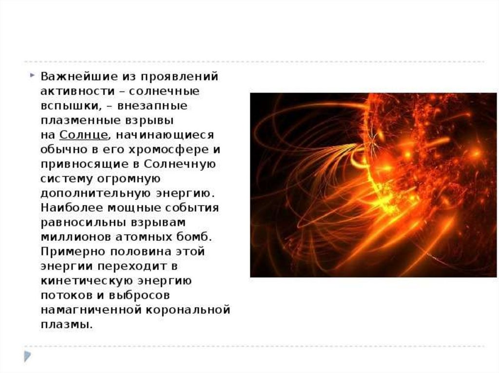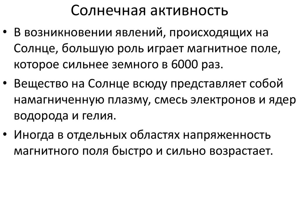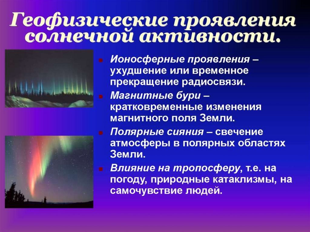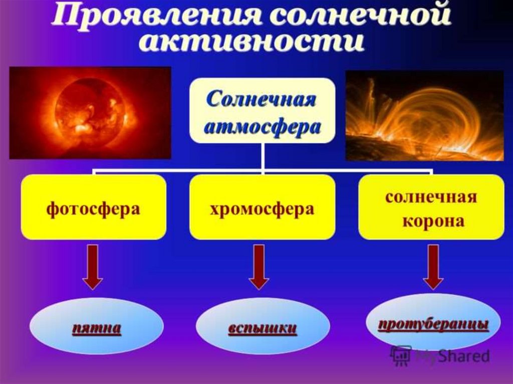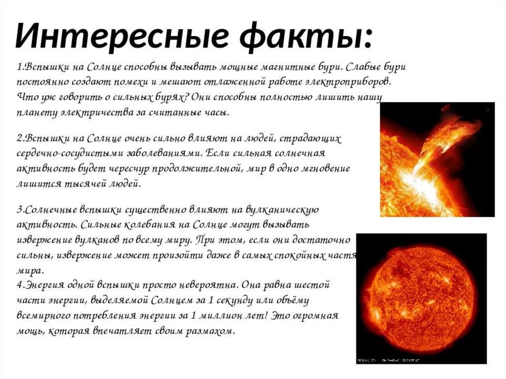 • Число пятен и протуберанцев, частотаи мощность вспышек на Солнце