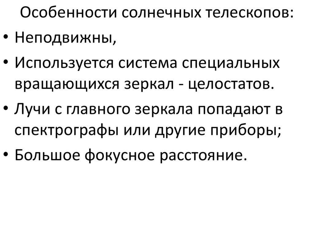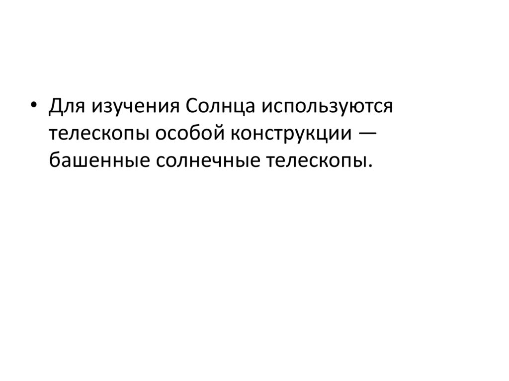 • Для изучения Солнца используютсятелескопы особой конструкции —