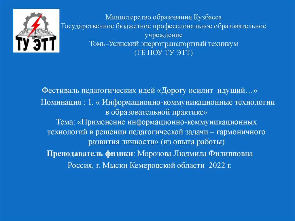 Преподаватель физики: Морозова Людмила Филипповна