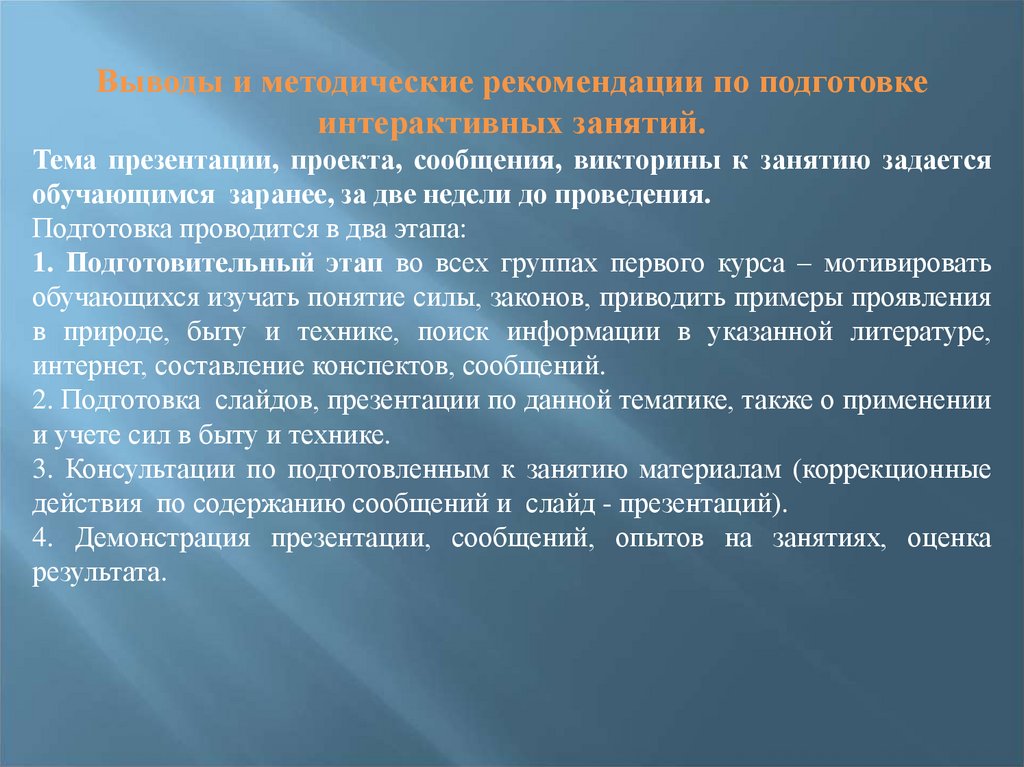 Выводы и методические рекомендации по подготовкеинтерактивных занятий.