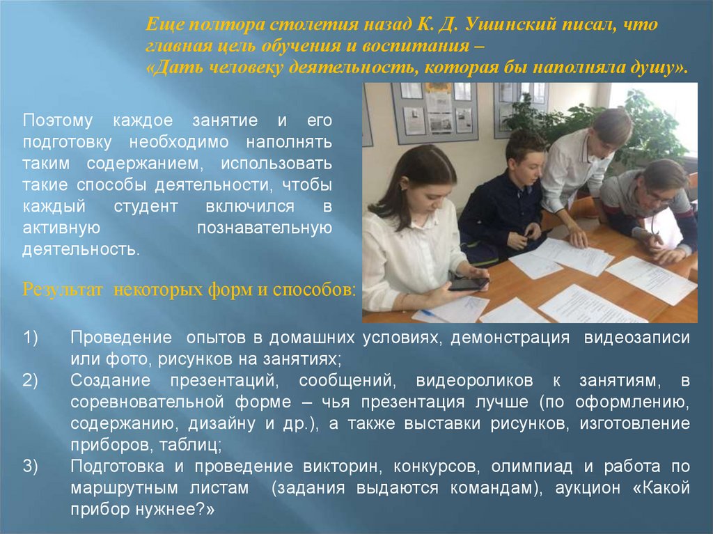 Еще полтора столетия назад К. Д. Ушинский писал, чтоглавная цель обучения и воспитания –