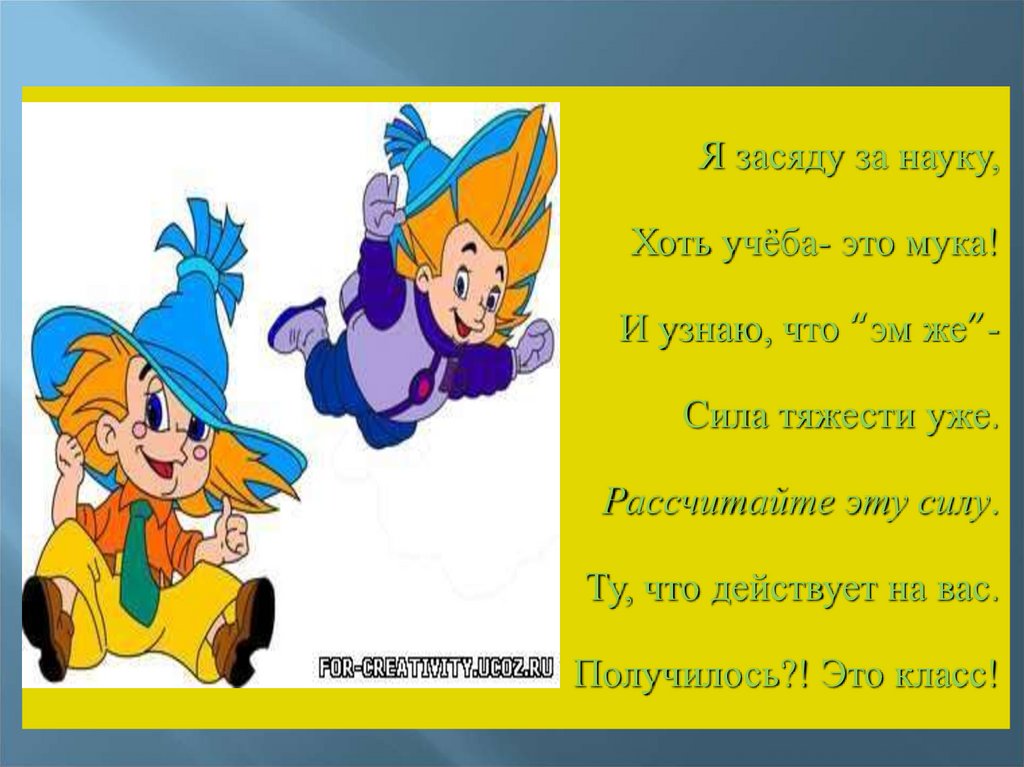И узнаю, что “эм же”Сила тяжести уже.