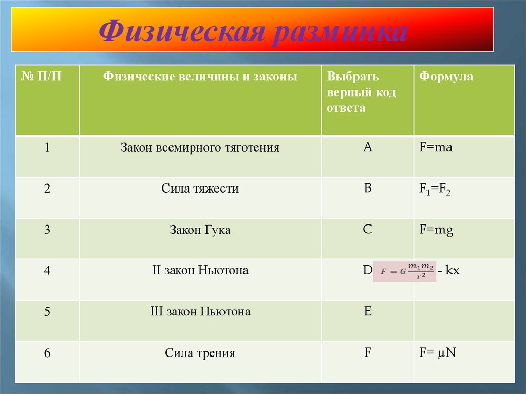 Физическая разминка№ П/П