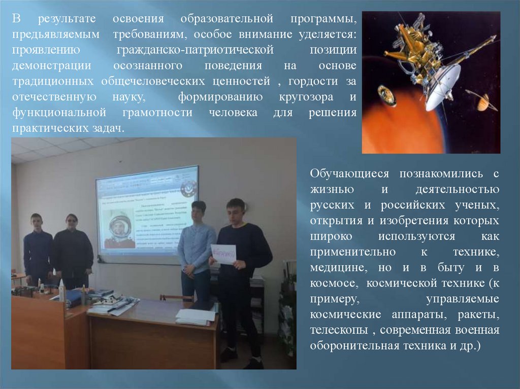 материала, проведения декады, посвящённой Дню российской науки,