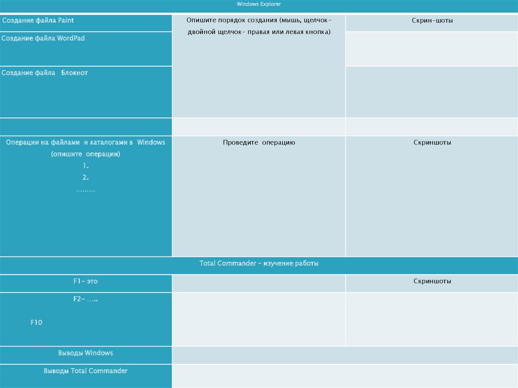 Windows ExplorerОпишите порядок создания (мышь, щелчок-