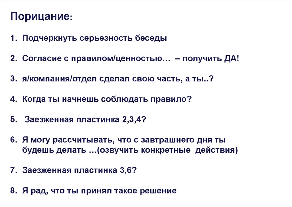 Порицание:1. Подчеркнуть серьезность беседы