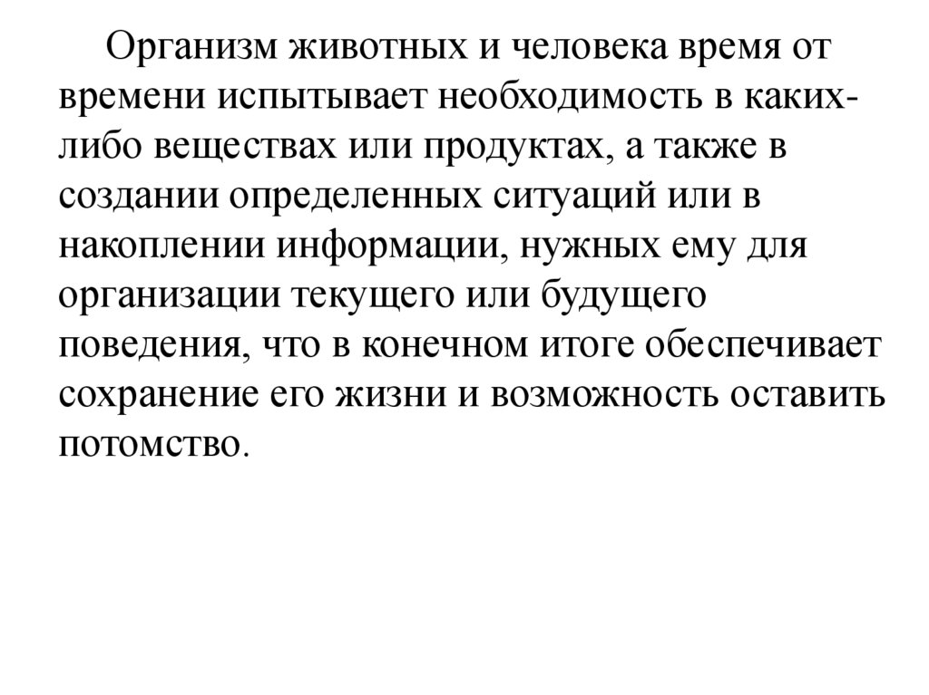 Организм животных и человека время отвремени испытывает необходимость в какихлибо веществах или продуктах, а также в