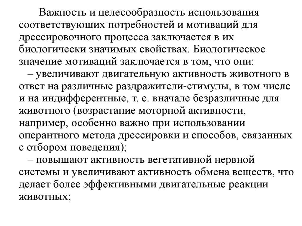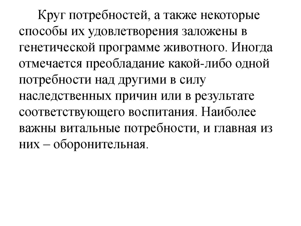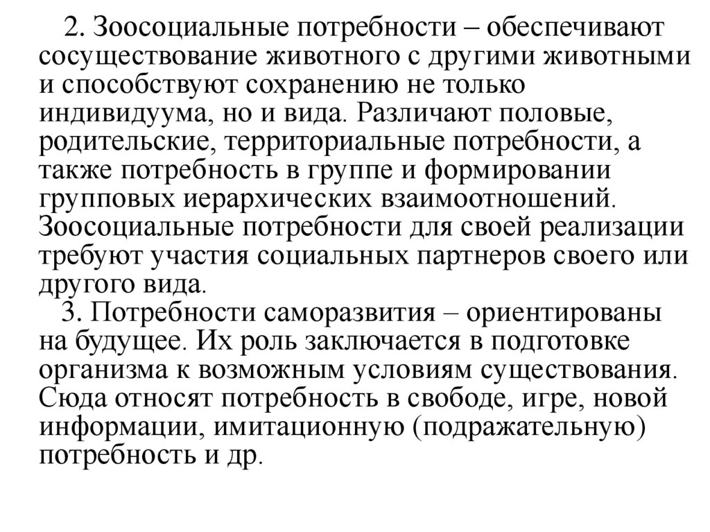 ощущениях и т. п. Неудовлетворение какойлибо из них ведет к гибели животного.