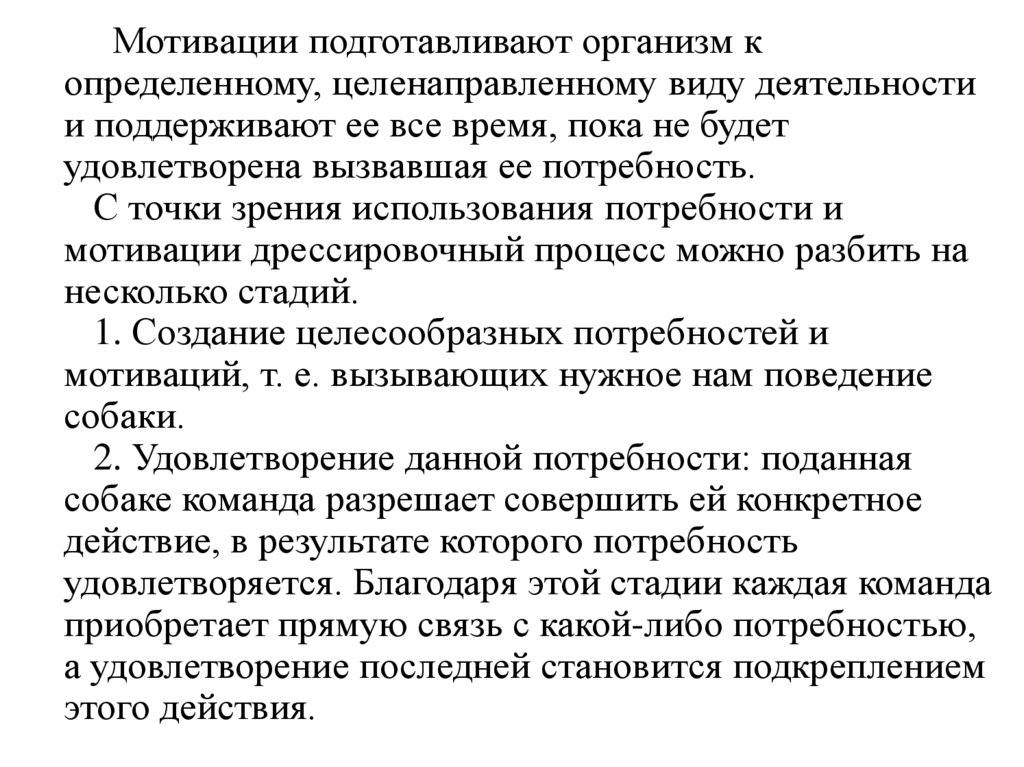 мотивации дрессировочный процесс можно разбить на