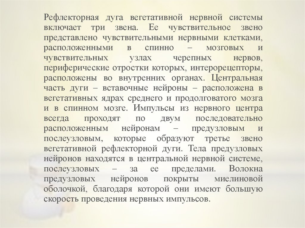 Рефлекторная дуга вегетативной нервной системывключает три звена. Ее чувствительное звено