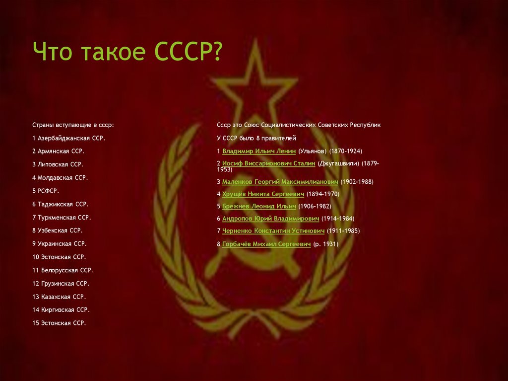 Что такое СССР?Страны вступающие в ссср: