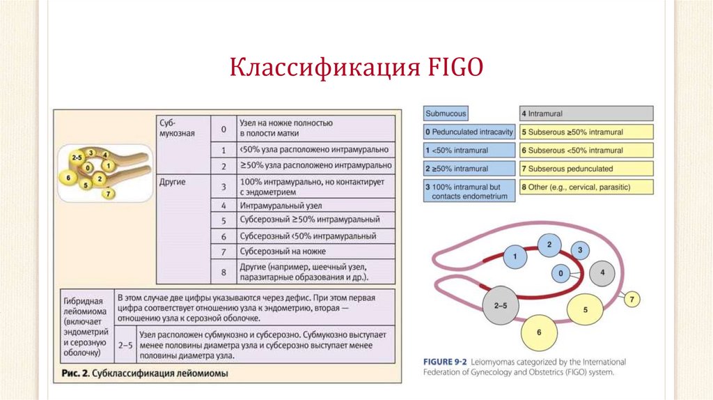 10) признаки нарушения кровообращения в узлах миомы матки;