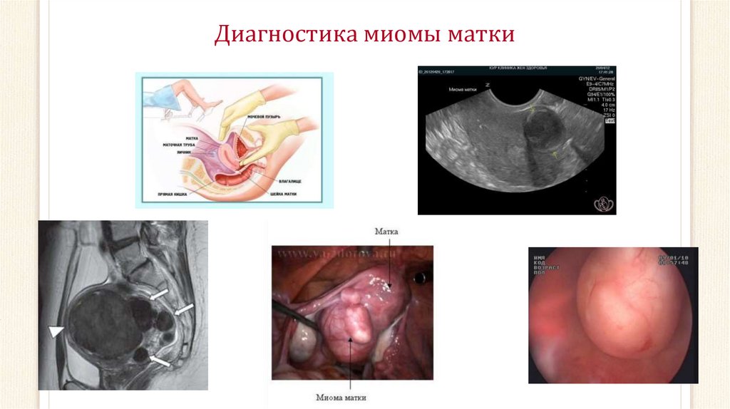 • УЗИ, МРТ ОМТ, лапароскопия: множественные миоматозные узлы