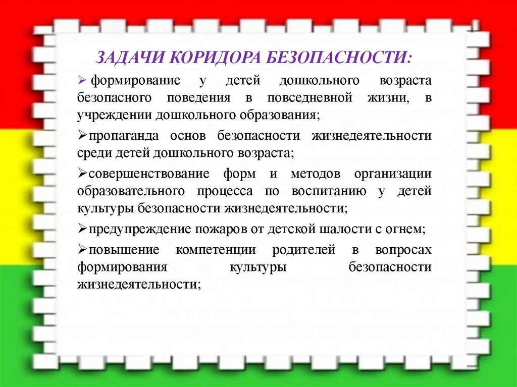 ЗАДАЧИ КОРИДОРА БЕЗОПАСНОСТИ:формирование