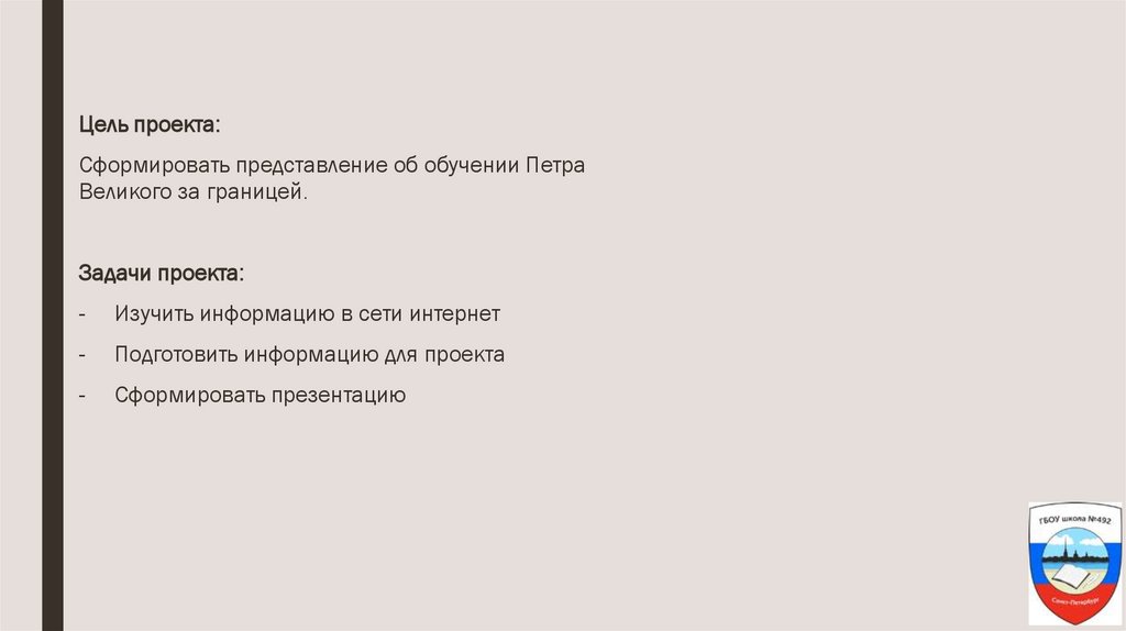 Цель проекта:Сформировать представление об обучении Петра