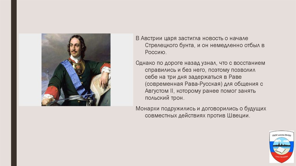В Австрии царя застигла новость о началеСтрелецкого бунта, и он немедленно отбыл в
