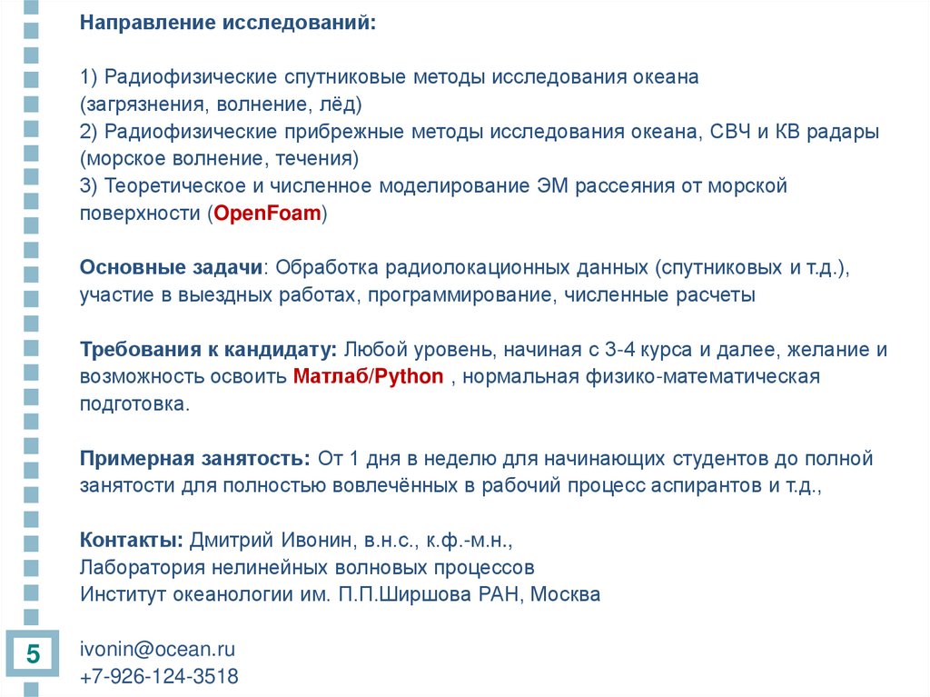 Радиофизические методы исследования океана. Ивонин Д.В.1.2