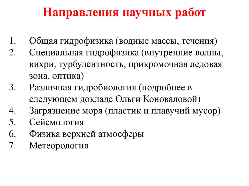 Направления научных работ1.