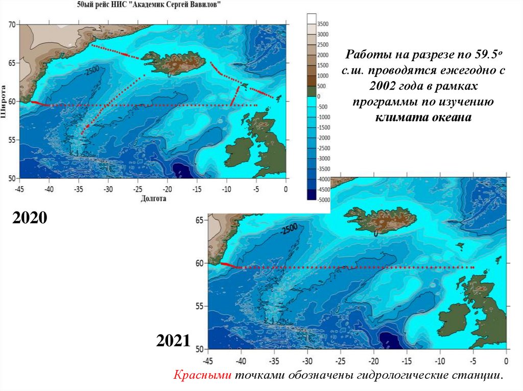 Работы на разрезе по 59.5ᵒс.ш. проводятся ежегодно с