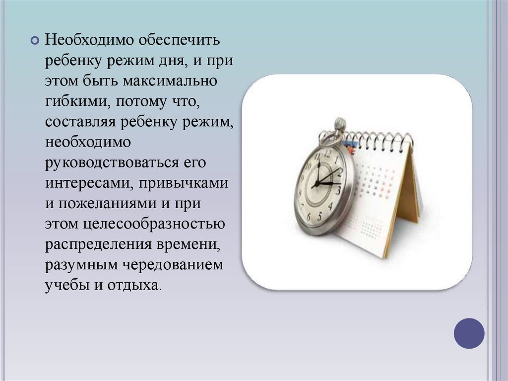 Необходимо обеспечитьребенку режим дня, и при