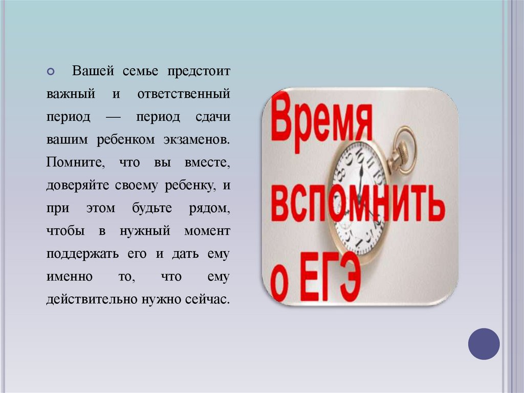 вашим ребенком экзаменов.