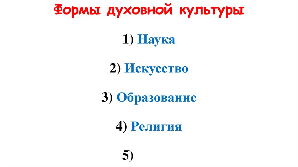 Формы духовной культуры1) Наука