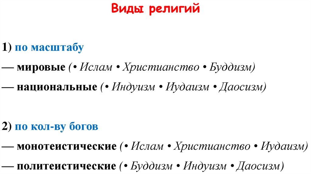Виды религий1) по масштабу