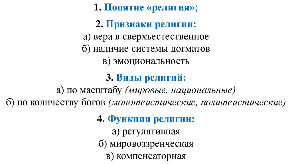1. Понятие «религия»;2. Признаки религии: